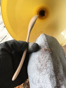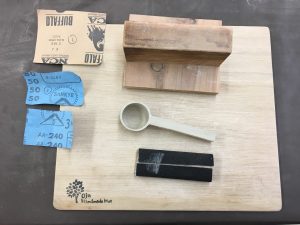 荒彫りしてあるスプーンをサンドペーパーで仕上げるだけだったのですが、気が付くと夢中で削っていました。